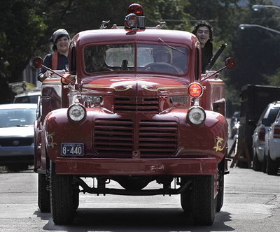 s’en vont à la chasse à bord d’un... camion de pompiers.